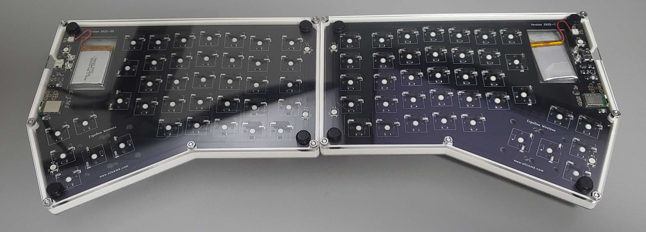 그 중 SliceMK 라는 곳에서 파는 Ergodox wireless 를 봤는데 가격도 상대적으로 저렴하고 무엇보다 완전한 무선 키보드로 선이 아얘 필요가 없는 제품이었다.