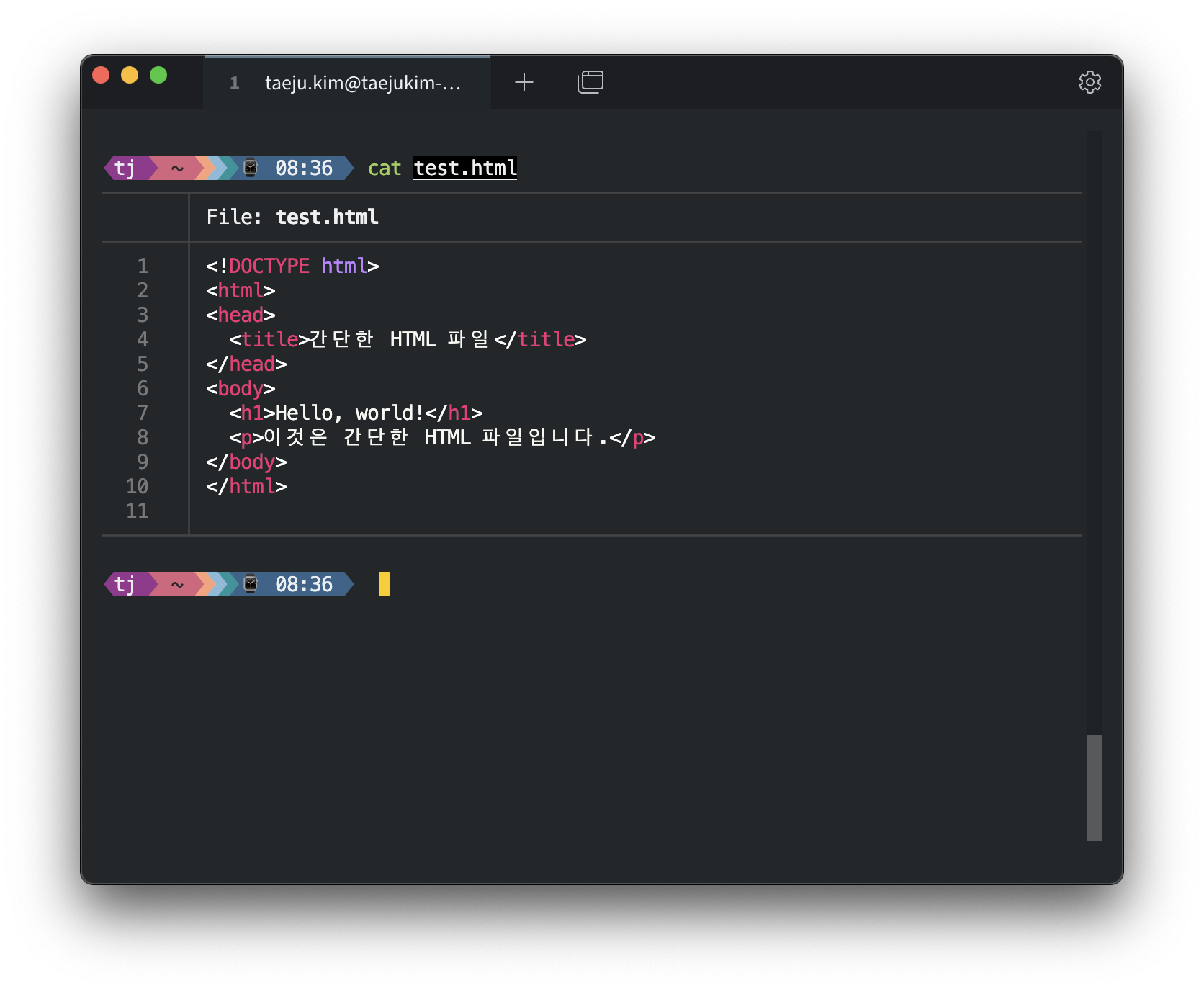 'cat' 은 cancatenate(연결하다) 의 줄임말로 파일의 내용을 터미널에 출력하거나 할때 유용하게 사용된다.