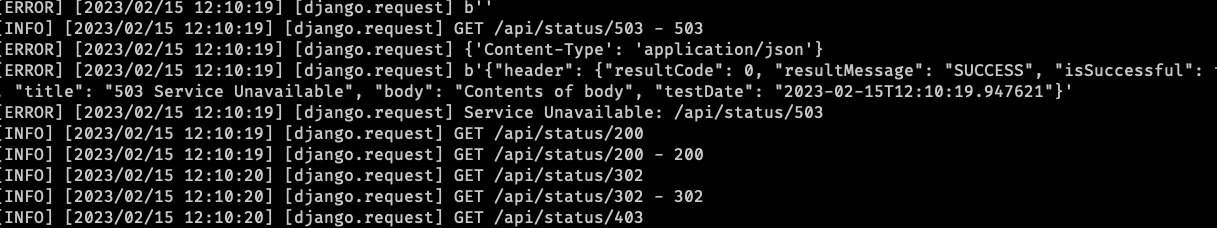 지금까지 django로 들어오는 모든 요청에 대해 로그를 출력하고 그 내용을 file에 적재할 수 있도록 구성이 마무리가 되었다.