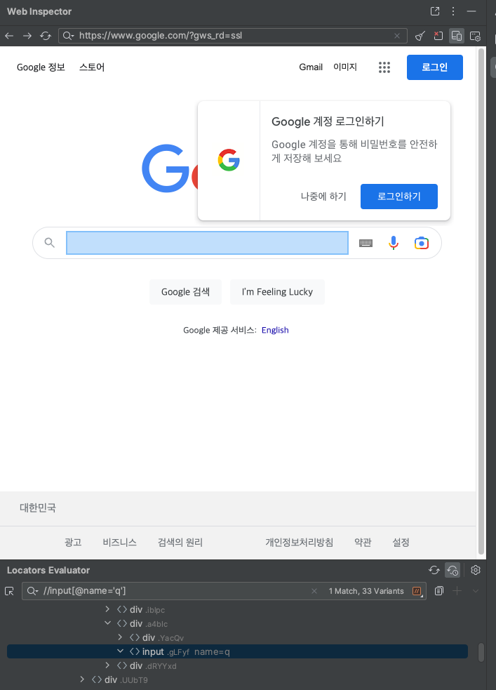 Web inspector를 사용하면 대상 Page의 selector들을 쉽게 찾을 수 있고 이를 코드에 바로 적용해주는 기능도 갖고 있다.